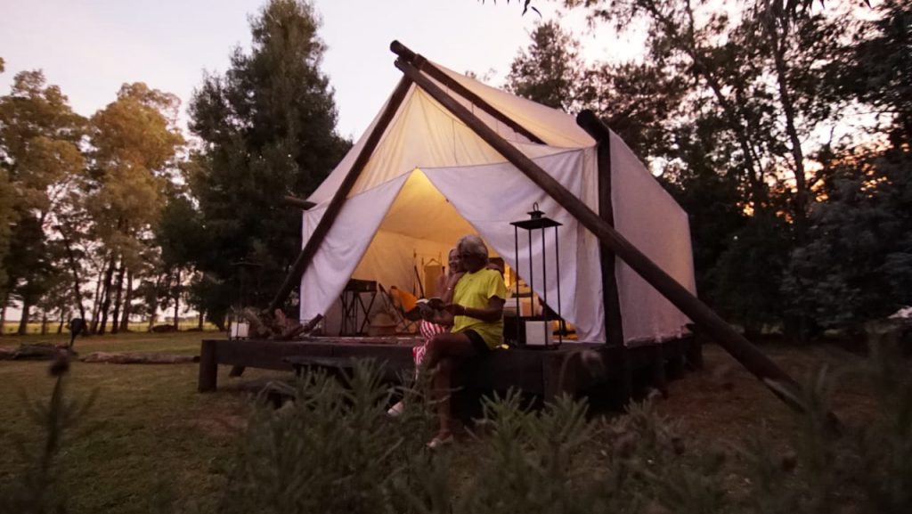 - Tiendas glamping con camas queen size y ropa blanca premium