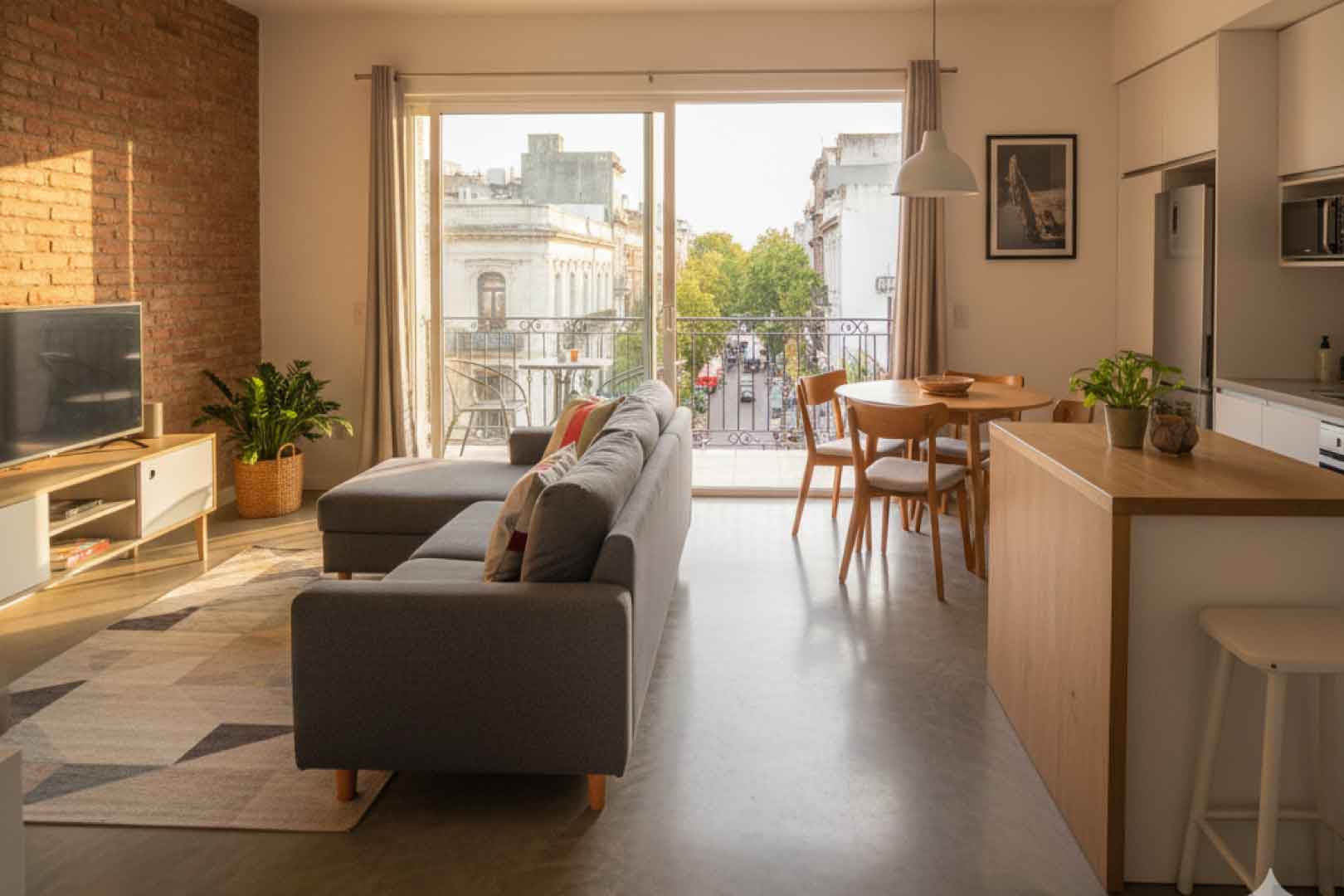 - Living comedor con TV y aire acondicionado
